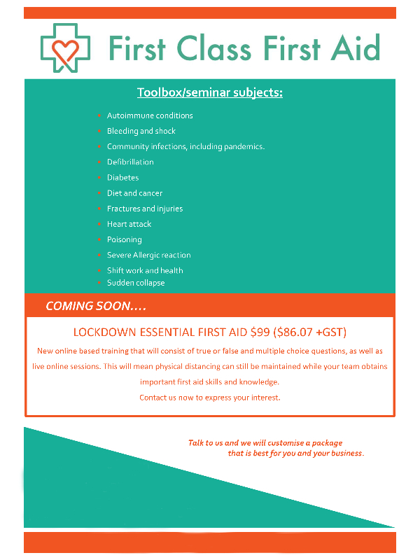 With over 40 years experience Angelique and the team at First Class First Aid are passionate about providing excellent quality First Aid Training Solutions.